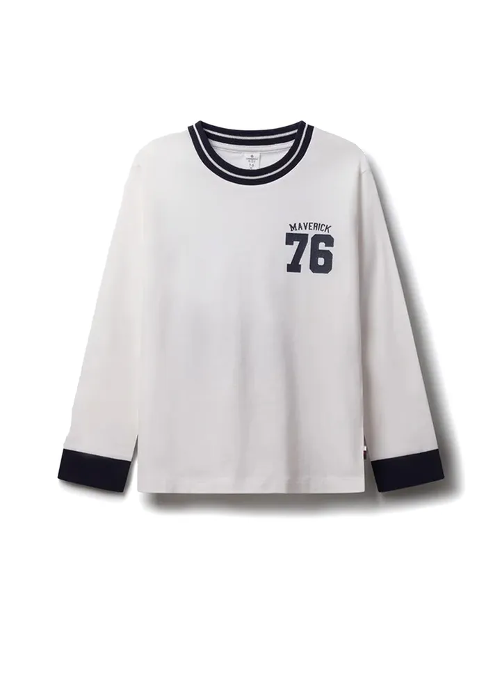 Harry Potter long sleeve, crew neck t-shirt featuring small MAVERICK 76 text print on the chest, big one on the back, and contrasting cuffs and collar.