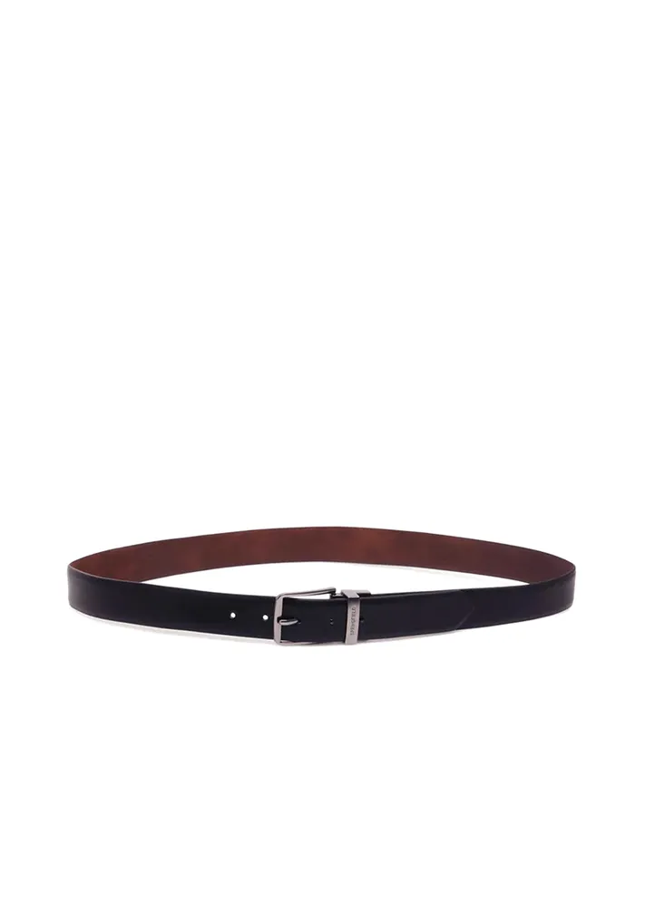 Reversible leather effect belt offers two color options and featuring a buckle with an engraved logo.