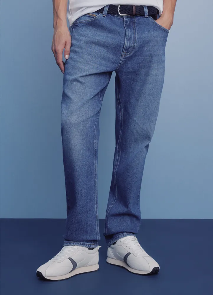 Regular fit jeans in stretch fabric, and a medium blue wash.