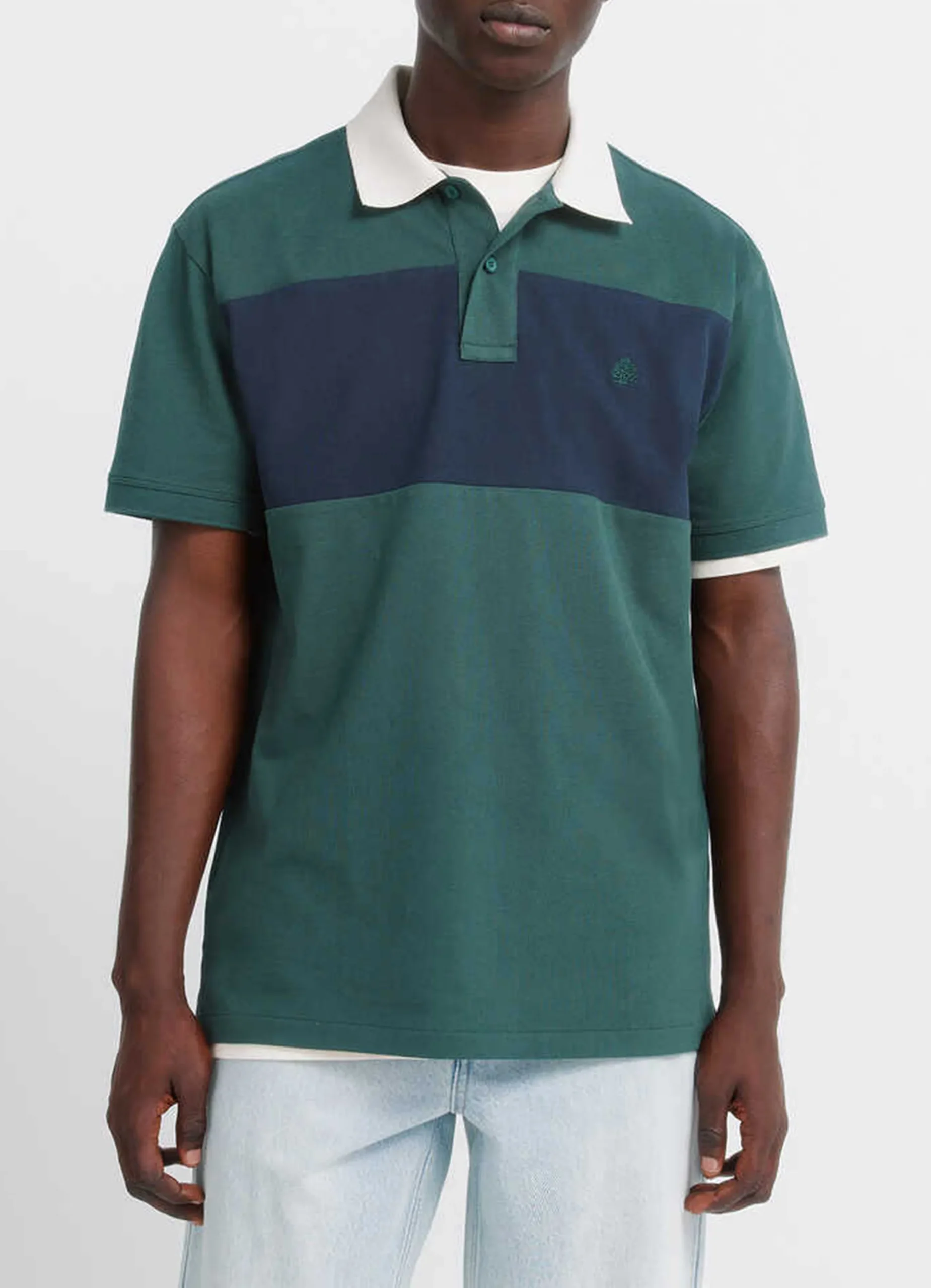 Short sleeve, regular fit, piqué polo shirt designed with a contrasting ribbed collar, two color blocks, and an embroidered Springfield logo on the chest.