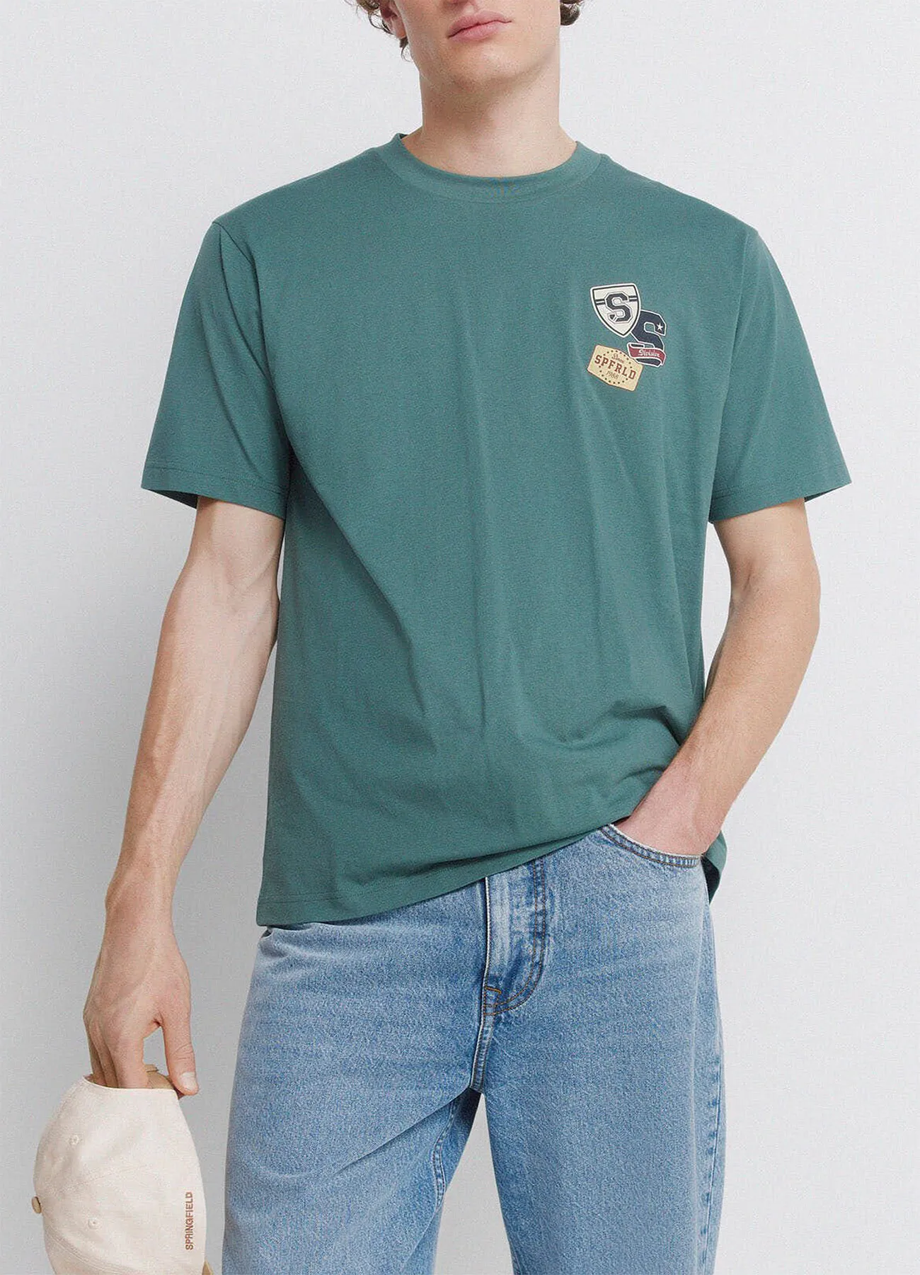 Short sleeve, crew neck, loose fit t-shirt with “Springfield Studio” prints on the back.