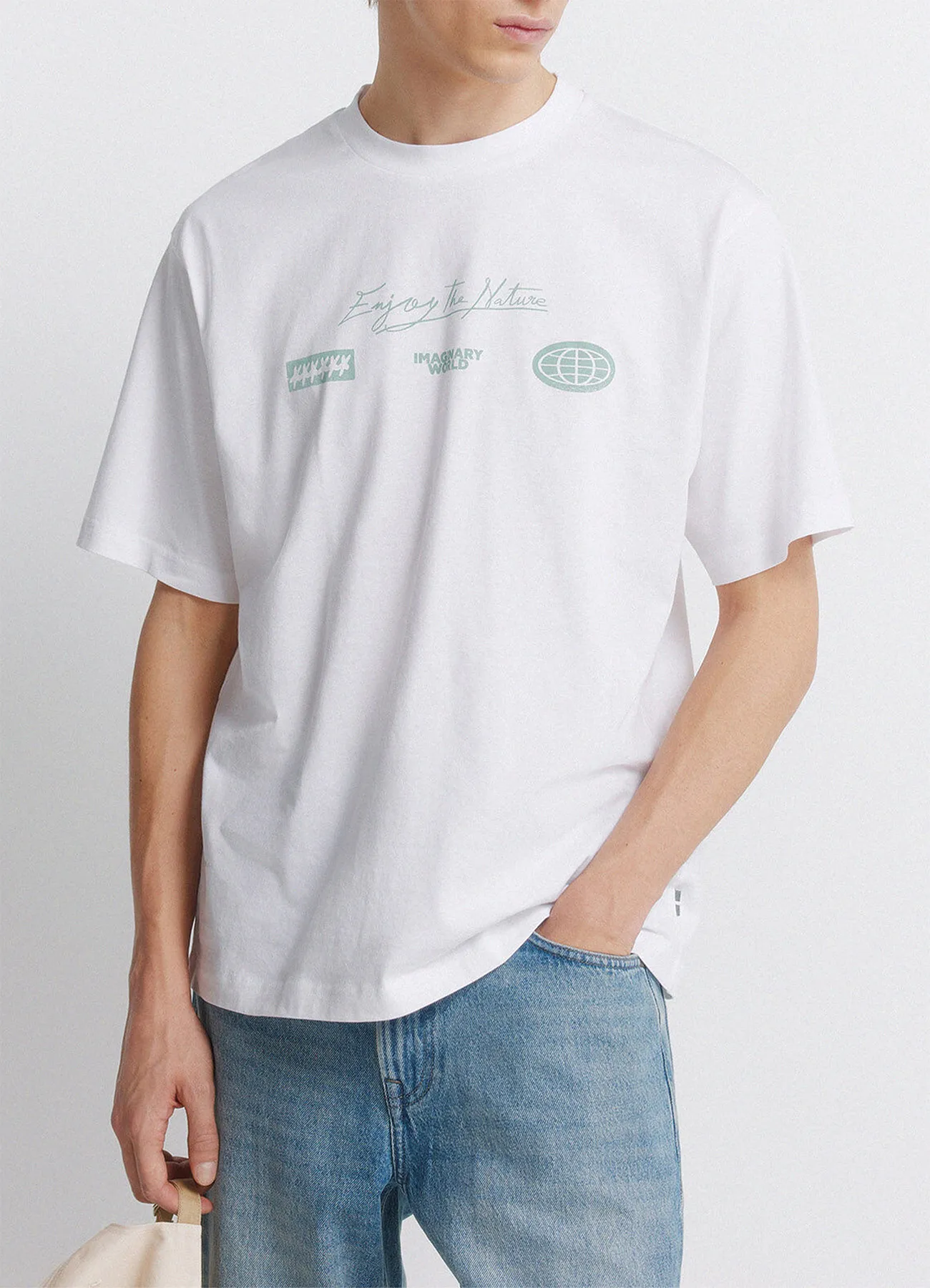 Short sleeve, crew neck, boxy fit t-shirt with a logo discharge print on the chest and back.