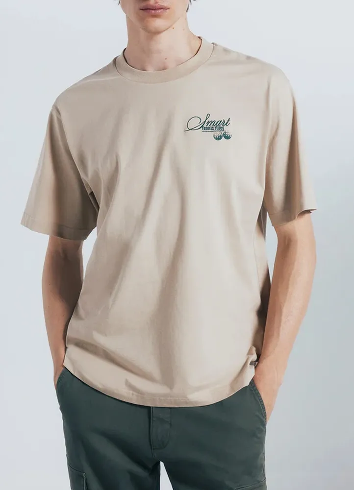 Short sleeve, crew neck, loose fit t-shirt featuring a ribbed neck, Smart Tennis Rules text and ball embroidered on the chest, and Tennis rules quote text print on the back.