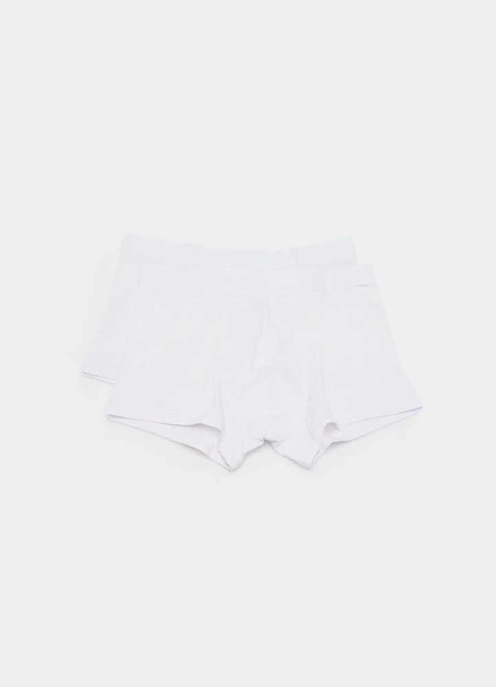 Pack of 2 basic cotton knit boxers with a medium waist, featuring an elastic and jacquard-branded waistband.