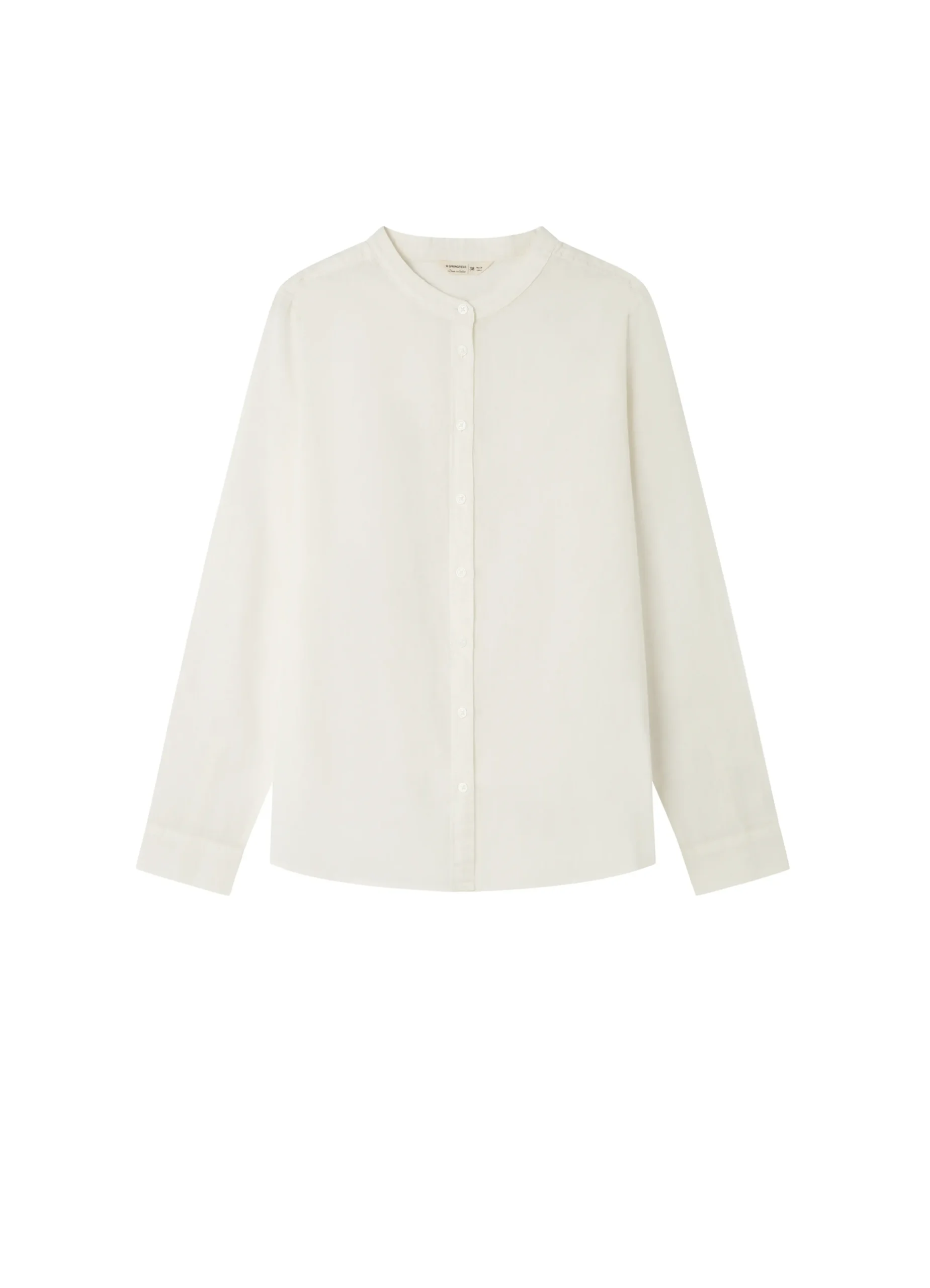 Long sleeve, Mao collar linen shirt with front buttons closure.