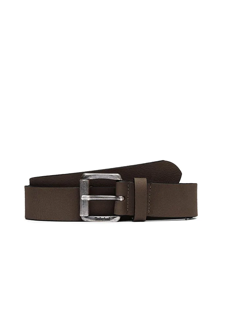 This keeper belt is made of full-grain, nubuck Premium Timberland Leather and features an antiqued silver finish roller buckle and our classic embossed logo on the tip.