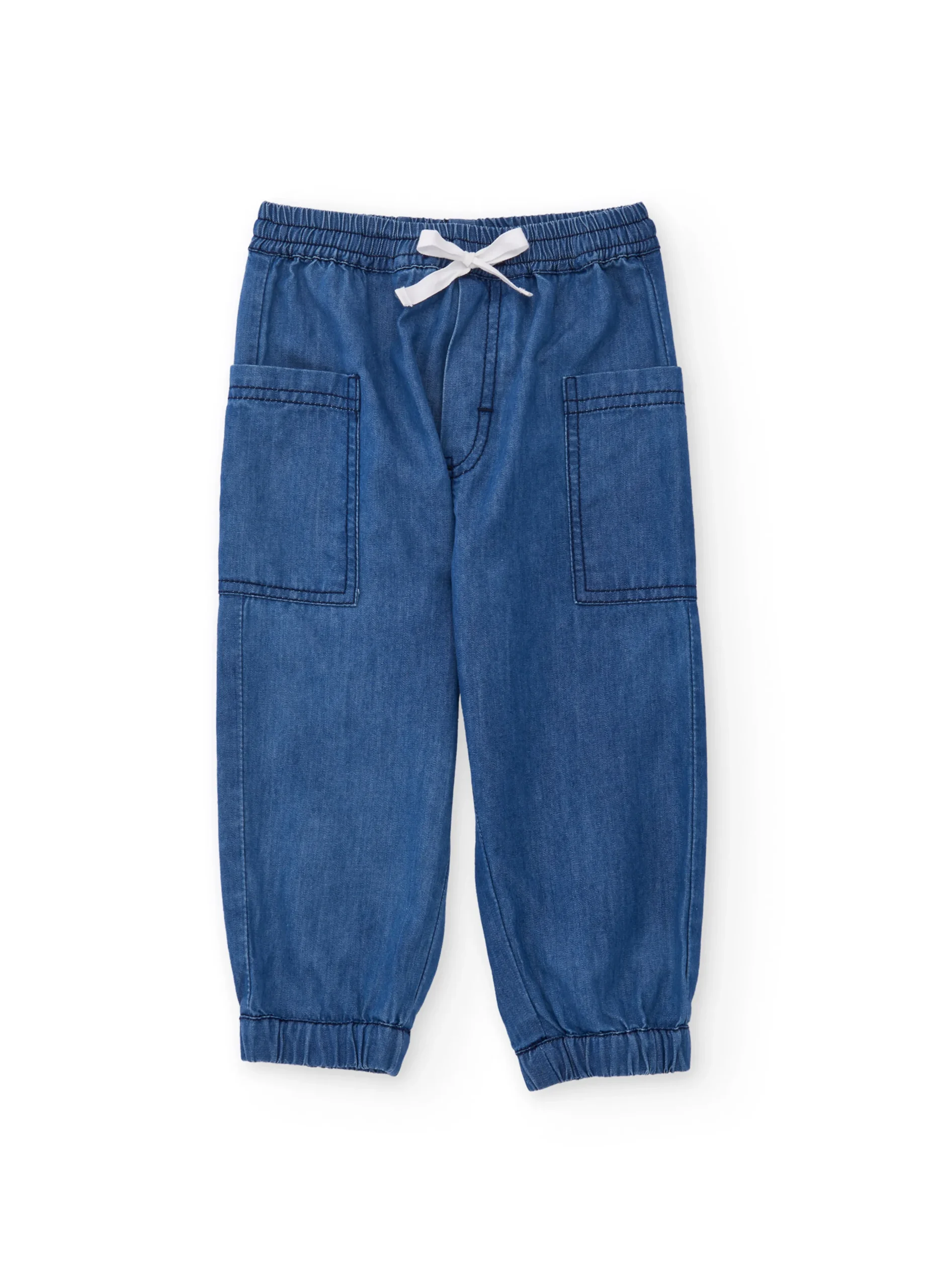 Drawstring denim cargo jeans.