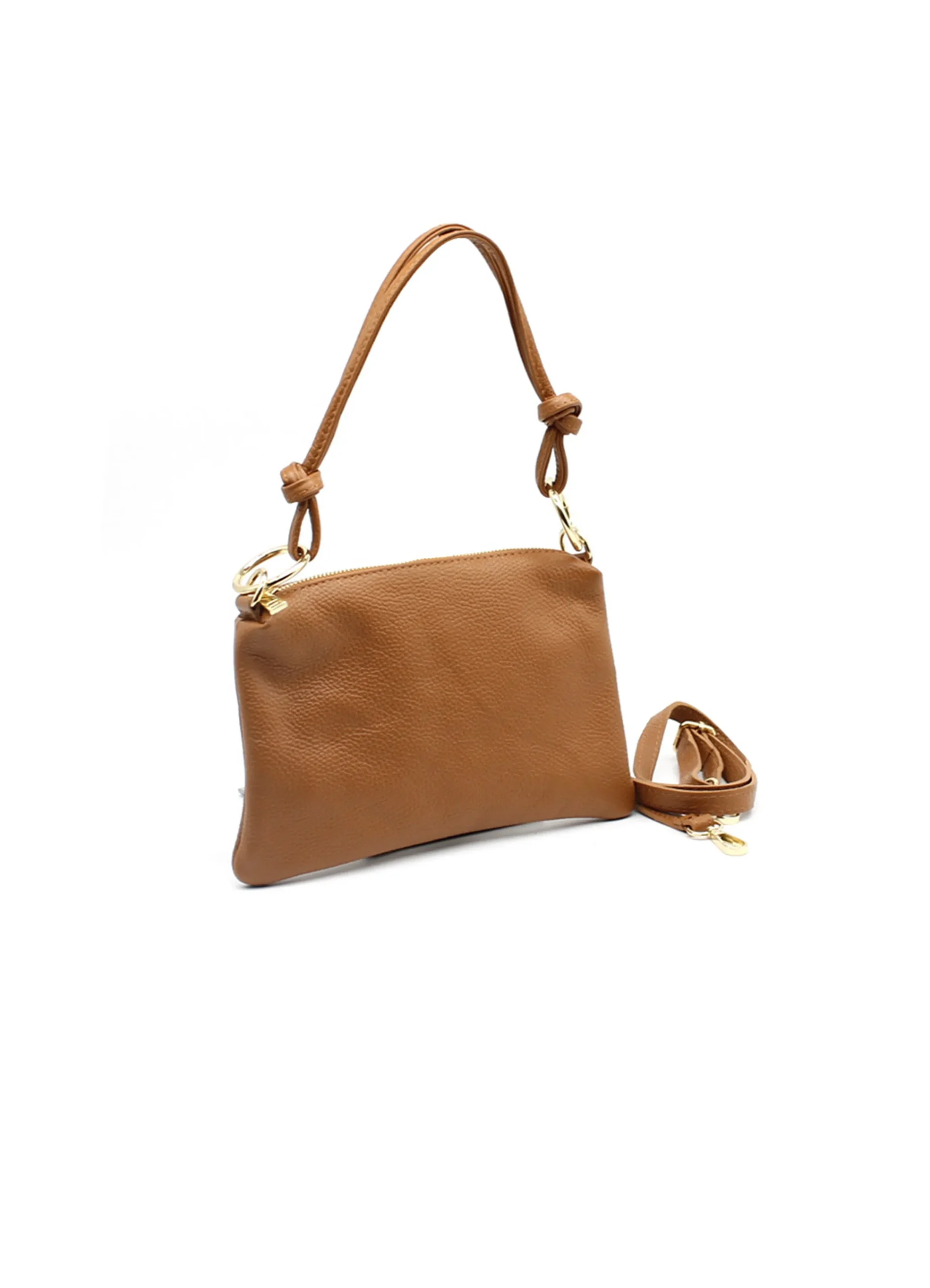 Versatile leather crossbody bag with an adjustable strap, designed for comfortable shoulder or crossbody wear.