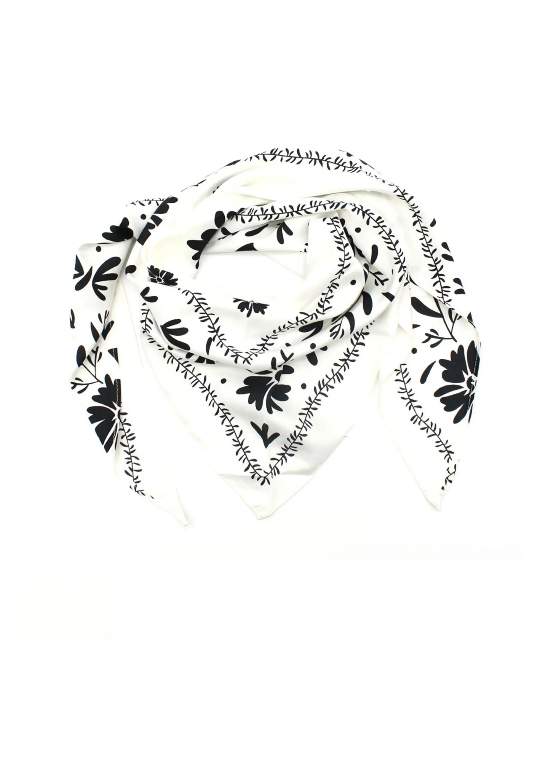 Lightweight scarf featuring a floral print in white and yellow tones, perfect for adding a fresh and elegant touch to any outfit.