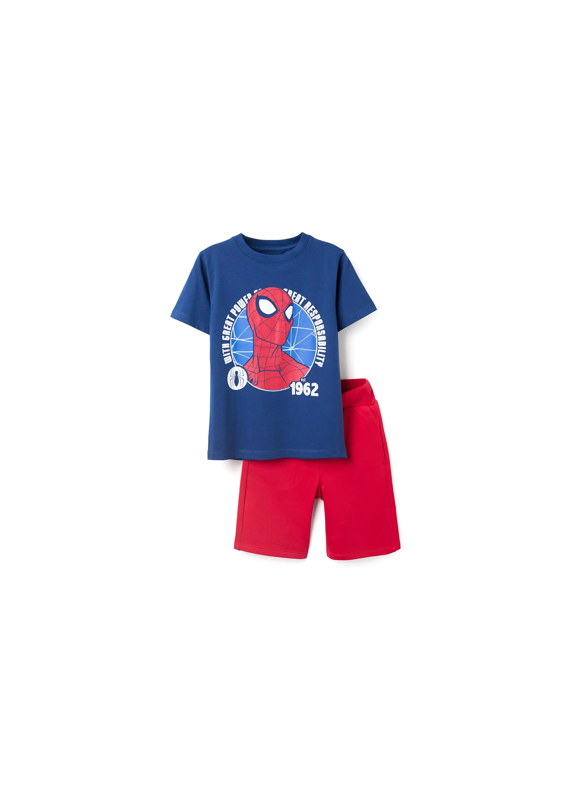 Set of spiderman with great power printed t-shirt and plain short.